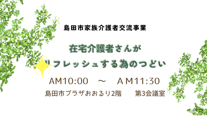 日々の生活の中に介護がプラスされると、いつの間にか頑張りすぎていることがあります。気分転換したり、情報を得たりして、楽な介護を目指しませんか? 自分をとりもどして、明日からの介護に潤いを・・・・。