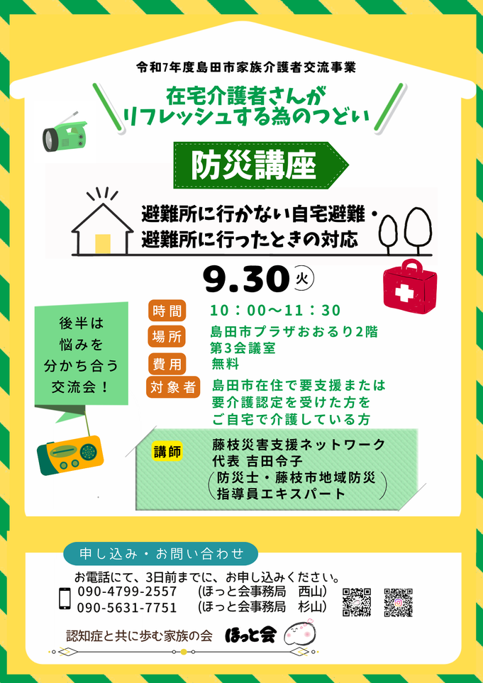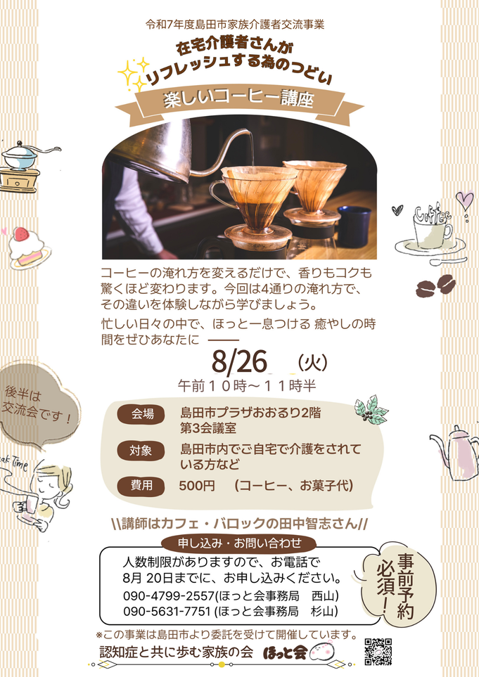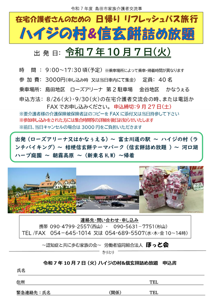 島田市の自宅介護者の皆さん、日頃の介護を忘れて一緒に楽しい時間を過ごしましょう。たくさんのご参加をお待ちしております!