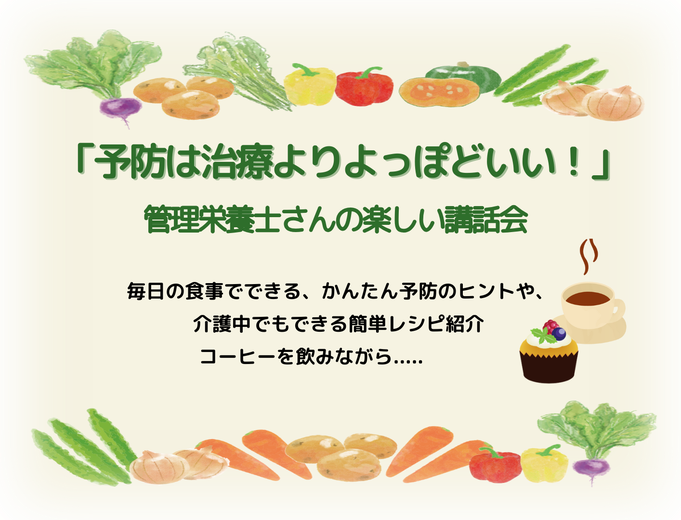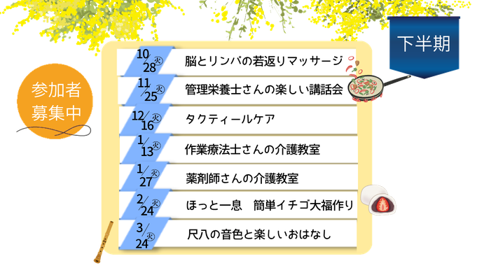 日々の生活の中に介護がプラスされると、いつの間にか頑張りすぎていることがあります。気分転換したり、情報を得たりして、楽な介護を目指しませんか? 自分をとりもどして、明日からの介護に潤いを・・・・。